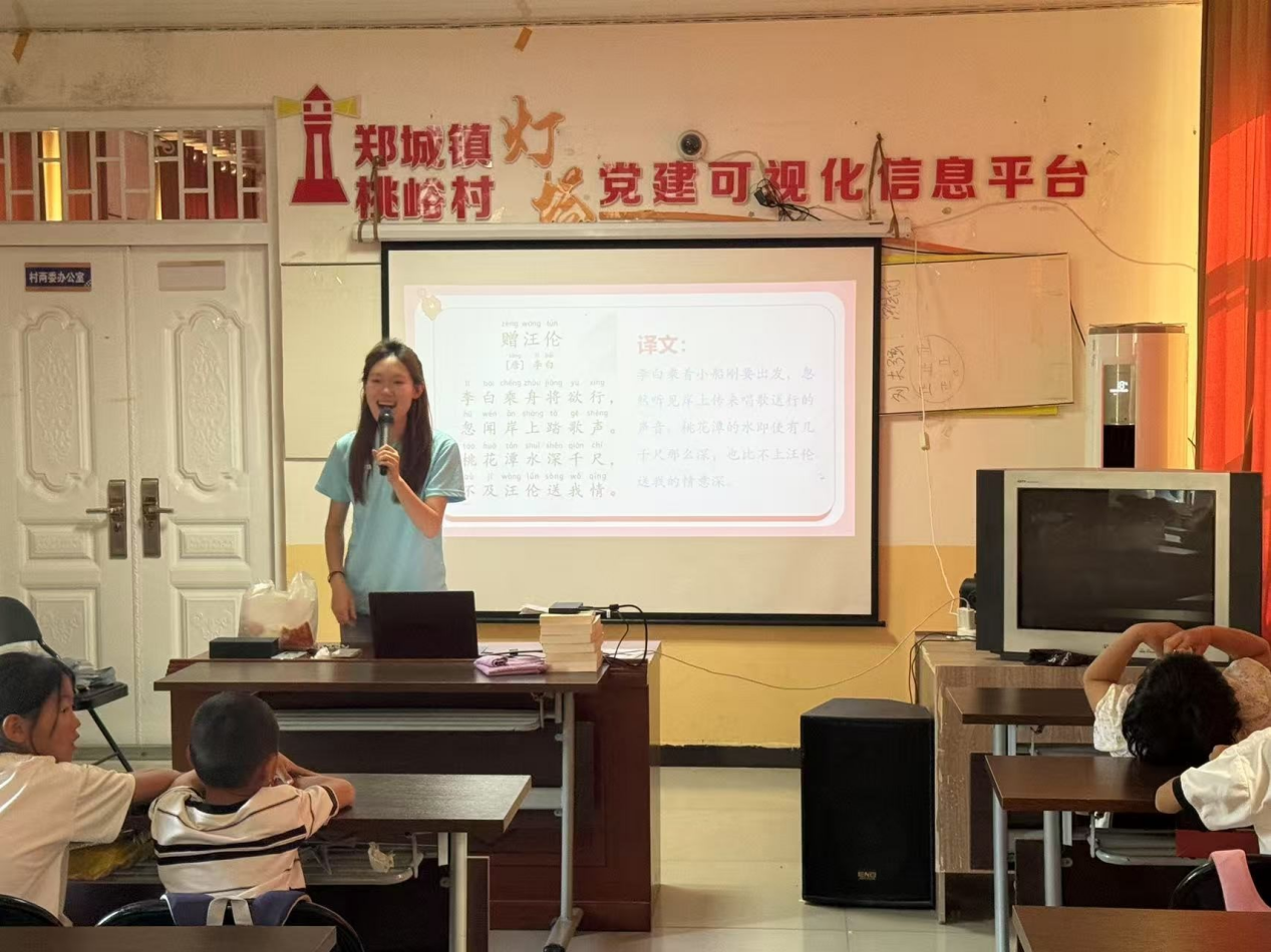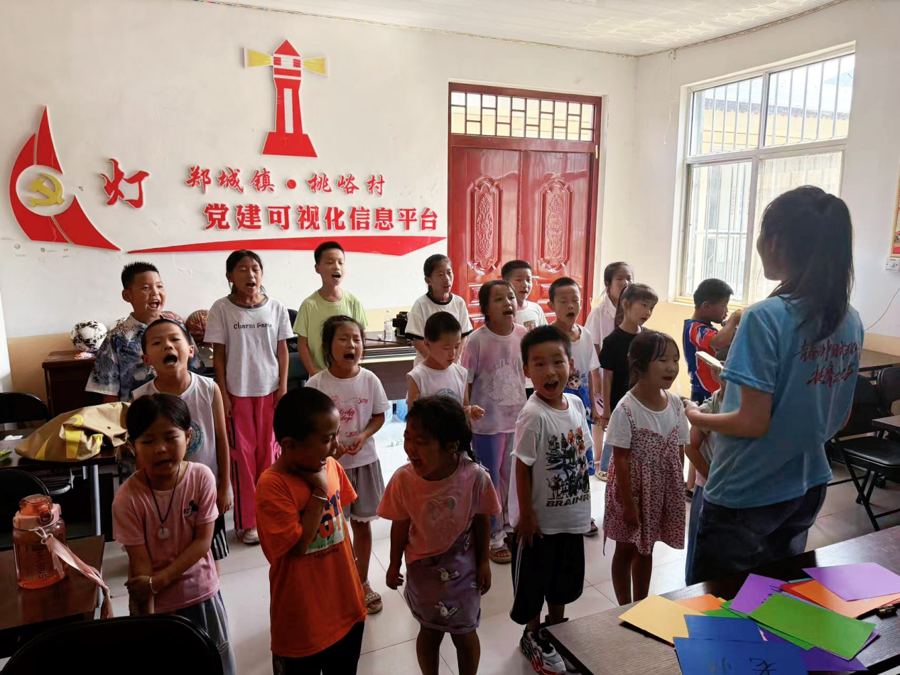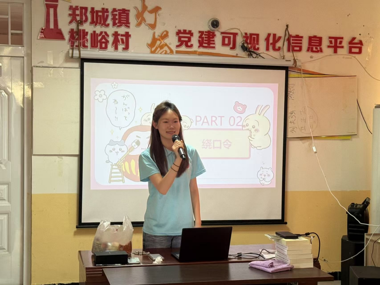 桃峪村党群服务中心的教室里,欢声笑语不断。“抬头挺胸,字正腔圆,让我们一起用声音传递美!”实践团精心设计的“言趣星球”推普课堂,成了村里孩子们最期待的去处。成员们化身“小老师”,用游戏、儿歌、情景剧,把普通话学习变得趣味盎然。