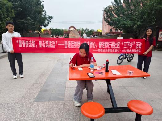 此次西安培华学院小笔尖·大法网志愿服务队在澄城县安馨园小区与阳光小区开展的普法宣传暨书法志愿服务活动,以法为盾守护民生福祉,以墨为媒传承文化根脉,在社区沃土播撒下法治文明的种子。服务队将始终秉持公益初心,以更富创意的形式、更具温度的举措,深耕普法宣传与文化传播融合之路,为筑牢法治社会根基、厚植传统文化底蕴贡献青春力量,让法治之光与文化之韵在基层交相辉映,共绘和谐发展的美好画卷。