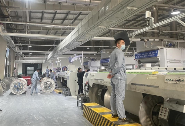 同样忙碌的场景也出现在陕西帛宇纺织有限公司的生产车间,全自动化生产线高速运转,叉车和手推车来回穿梭、运送原料,工人们在各自岗位上熟练操作,构成了一幅繁忙而高效的纺织生产画面。“正月初八,我们正式开工,目前已全员到岗并满负荷复产。2025年,我们将继续深耕涤棉领域,加大研发投入,深化数转智改,实现从销售订单到生产环节的全流程线上管理。”公司总经理助理刘磊说。