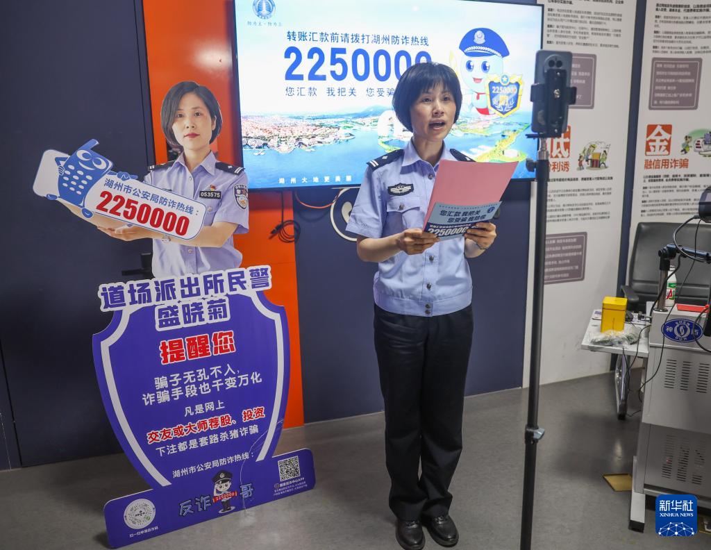 5月14日,道场派出所民警在道场乡安防体验馆开展反诈直播。新华社记者 徐昱 摄