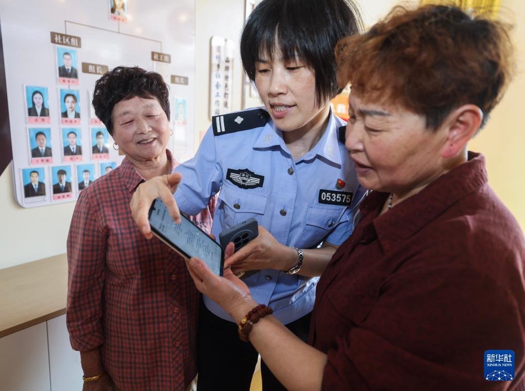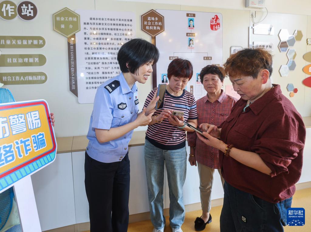 5月14日,道场派出所民警在道场乡浮玉社区指导居民加入湖州“e企安”微信群,实时接收反诈信息。新华社记者 徐昱 摄