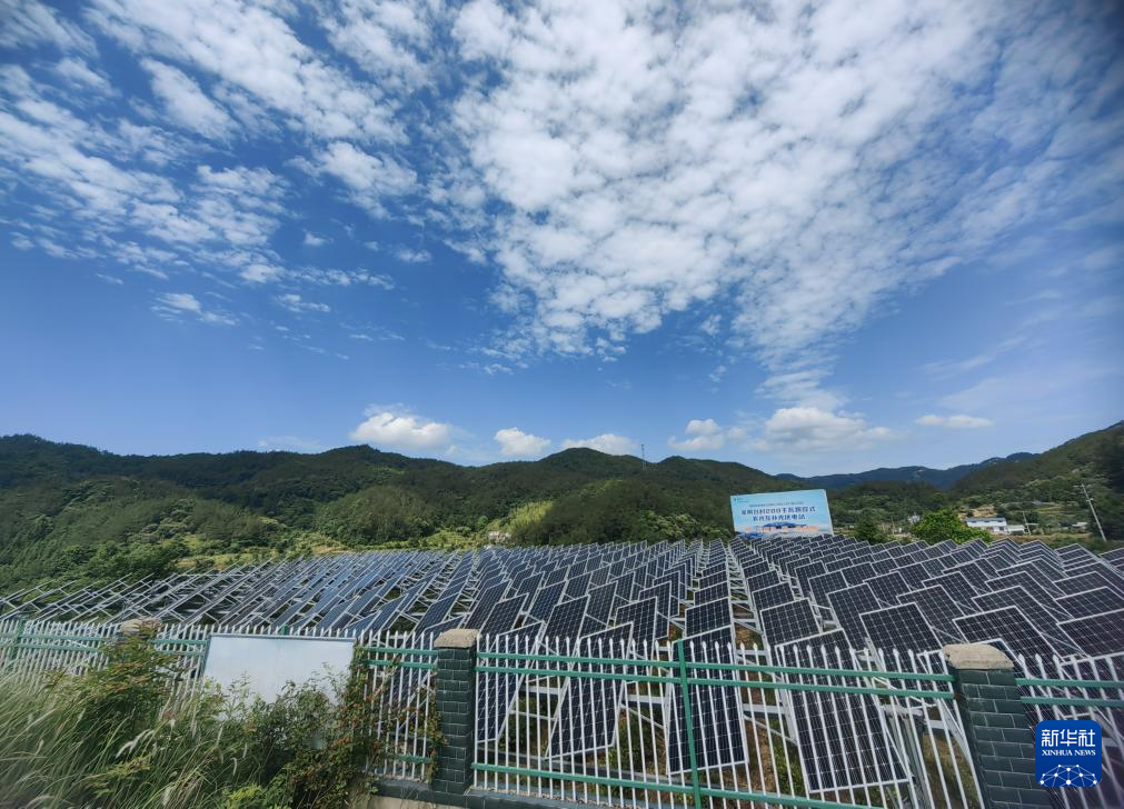 这是安徽省六安市金寨县汤家汇镇金刚台村的“茶光互补”式光伏发电项目(6月14日摄)。新华社记者 马欣然 摄