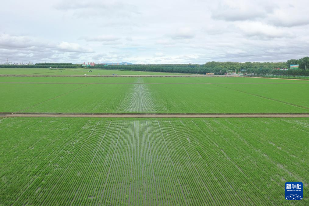 6月23日拍摄的北大荒集团七星农场有限公司通过格田改造后的水田。改造工程通过减少池埂、水渠等田间工程占地面积,有效提高土地的利用率(无人机照片)。