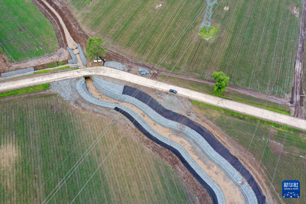 6月23日拍摄的北大荒集团黑龙江友谊农场有限公司侵蚀沟石笼谷坊治理工程现场(无人机照片)。